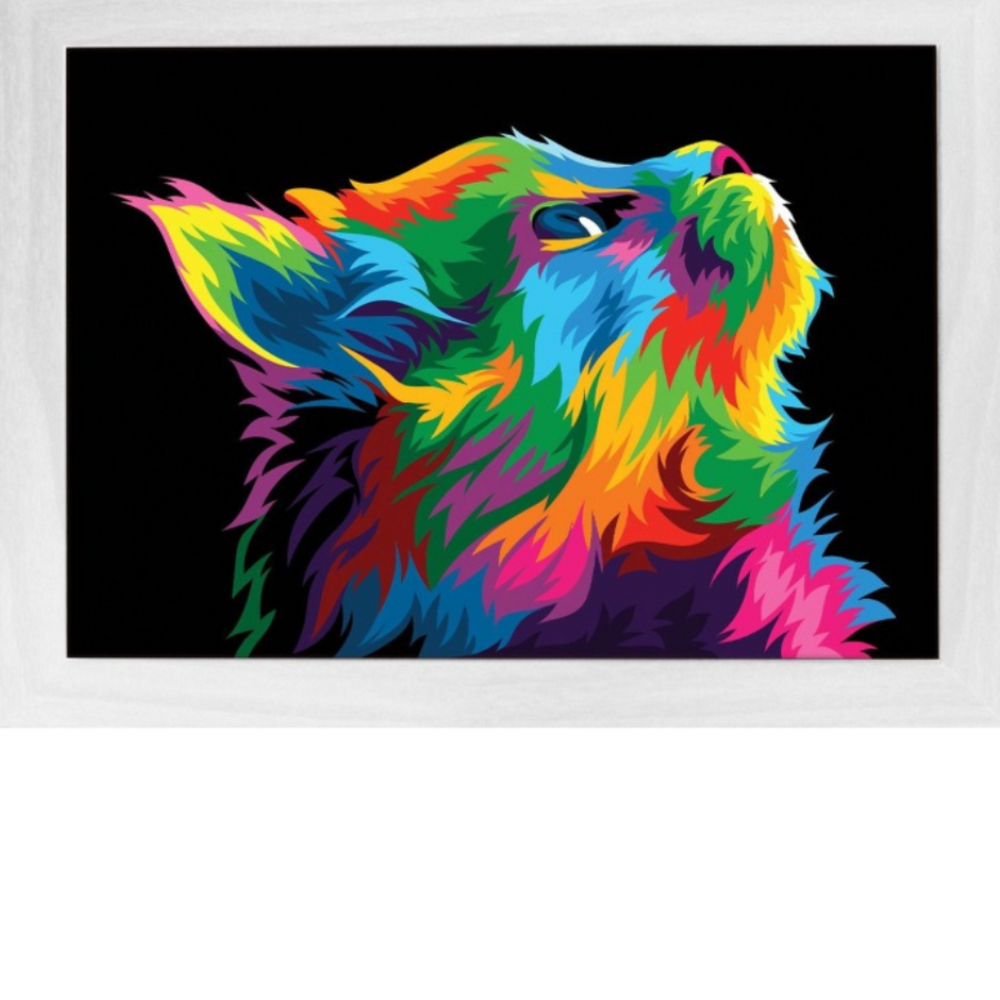 Exclusively designed by Fabulous Felines® Our Stunning Rainbow Cat Lap Tray Design features a beautiful rainbow coloured cat on a black background.