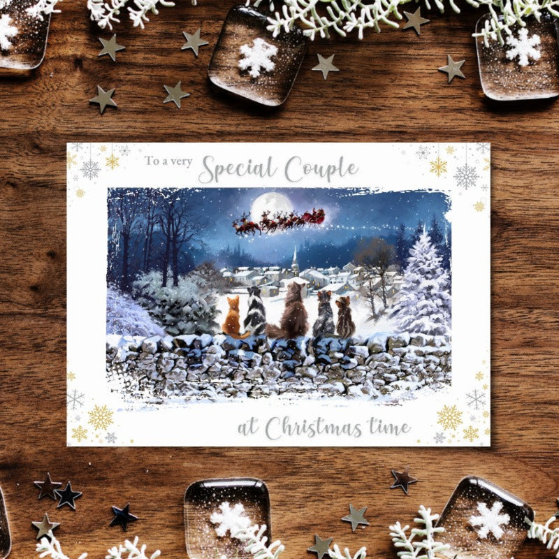 Featuring a painting of five cute cats sitting on a drystone wall gazing at Santa's sleigh on a snowy Christmas Eve, this Special Couple Christmas Cats card is based on an original artwork by Richard Macneil and will make the purrfect Christmas Card for your cat loving best friend this Christmas.
