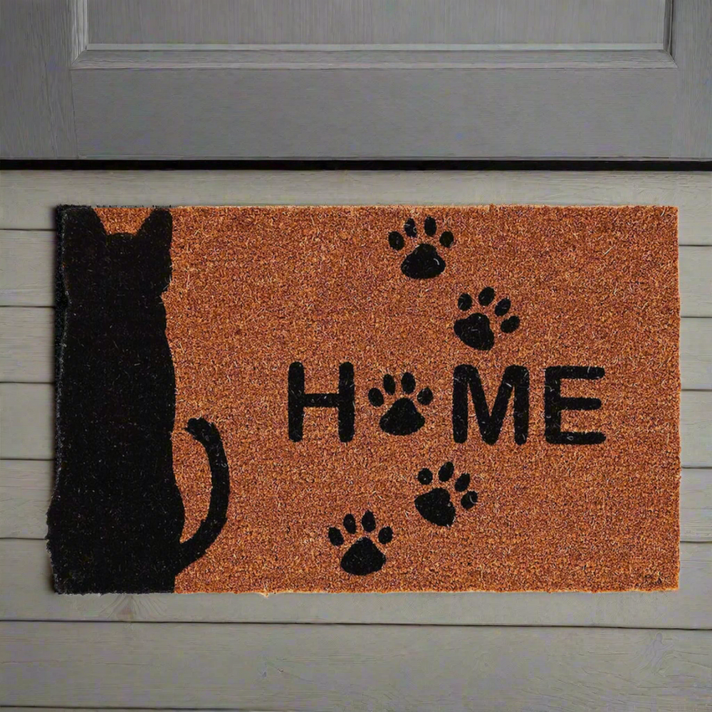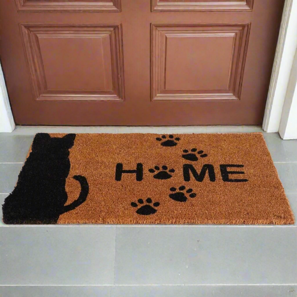 Welcome to this wonderful Silhouetted Black Cat and Paws Coir Large Door Mat! It's a purrfect fit for cat lovers who want to welcome their feline friends in style. Measuring 75 x 45 cm and made of durable coir material, this non-slip and self-laying mat features a beautiful silhouette of a black cat with paw prints and the word 'Home', making it an excellent addition to your indoor or outdoor space.