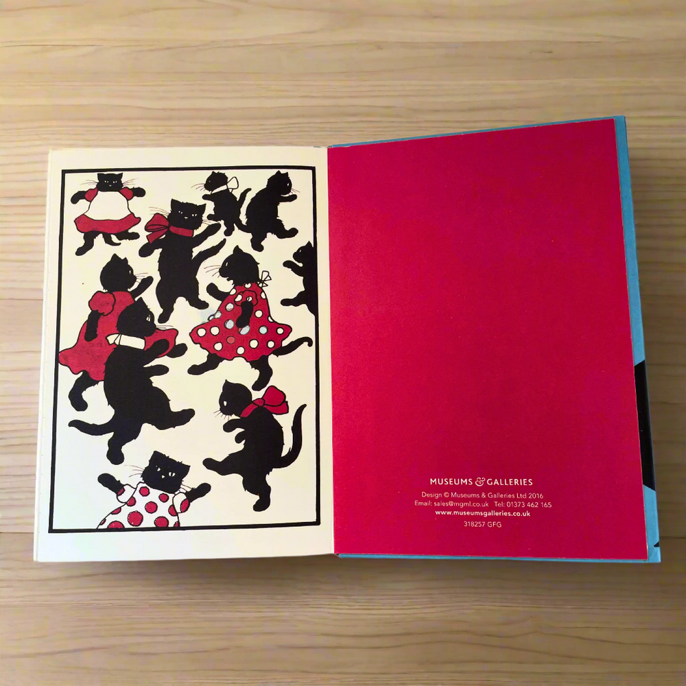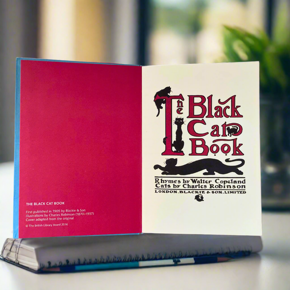 This beautifully designed notebook features cover art adapted from the 1903 classic The Black Cat Book with rhymes by Walter Copeland and illustrations by Charles Robinson. Its charming retro design showcases a red-haired girl surrounded by playful black cats, perfect for book lovers, stationery fans, and feline fanatics alike!