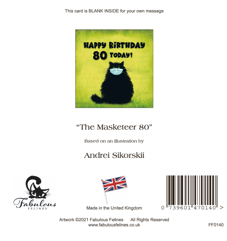 The Masketeer Cat 80th Birthday Card — Purrfect Cat Gifts Skip to content
