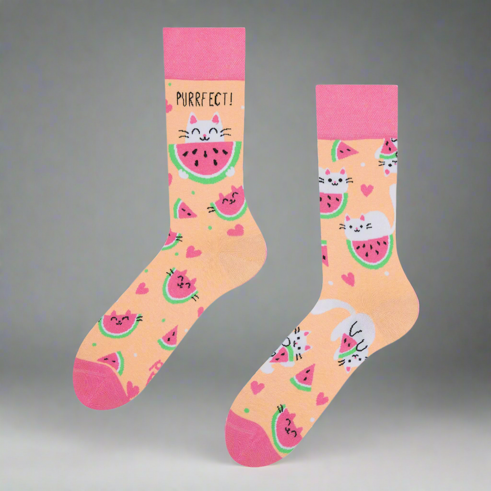 Watermelon Peach Regular Odd Socks — Purrfect Cat Gifts Skip to content